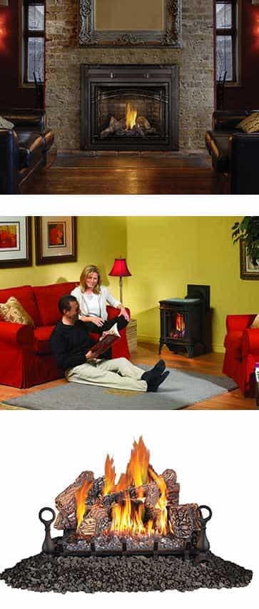 - Inserts - Gas inserts, wood inserts, fireplace grate heaters, and gas fireplace logs.